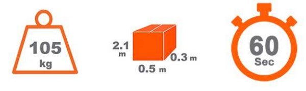 - Opgevouwen afmetingen: 2,10mx 0,33 x 0,33m, 57kg